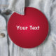 A  cranberry red omni effect on a pin back button with a text template for your personalization.