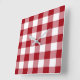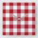 Square wall clock with a classic red and white gingham checked pattern design. Matching home decor available.