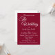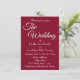 Simple style, wedding invitation that features a trendy, cranberry red colour background along with the future bride and groom names and event date, time, location, and registry printed in white, stylized script. Personalize your wedding invitation by replacing info with your own. Select your invitation paper style and quantity. Designed to coordinate with our Cranberry Red Simple Style Wedding collection.