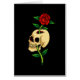 Une image classique de tatouage vintage d'un crâne avec la tige d'une rose rouge qui pousse à travers elle.