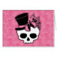 Ce crâne girly porte un chapeau de dessus mignon avec des arcs et des fleurs roses.