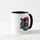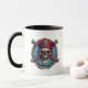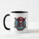 Cette tasse à café en céramique bicolore est montrée avec l'image d'un crâne de pirate des deux côtés de la tasse. Noir à deux tons Customisez cet article ou achetez tel quel. Image sous licence