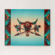 Profitez de ce Puzzle unique "One of a Kind" Buffalo crâne et flèches! Il comprend un crâne et des flèches de Buffalo du sud-ouest avec des plumes sur un Arrière - plan de soleil turquoise et orange...Entouré d'une frontière du sud-ouest en Turquoise, Orange et Noir! Design D'Art Original Par L'Artiste Kerry Miller.