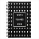 Motif de crânes blancs sur un arrière - plan noir. Ce planificateur vous permettra de planifier vos tâches comme vous le souhaitez.Personnalisez en ajoutant votre nom, titre et année.