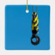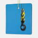 Crane hook with yellow and black stripes hanging ceramic ornament