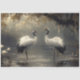 This serene painting features a graceful pair of cranes standing in a misty marsh, surrounded by soft, atmospheric tones that evoke a sense of tranquillity. The delicate details and muted colour palette create a timeless and elegant nature scene, perfect for bird and wetland art lovers.