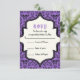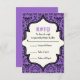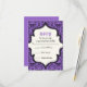 Crânes damasser violet noir motif mariage Halloween RSVP réponse/réponse carte. Ce design élégant et formel est doté d'un motif damassé à fleurs et crâne et d'un cadre en ivoire au centre. Design classique mais contemporain avec deux polices : vintage et cool. Design élégamment éffrayant, parfait pour les mariages de automne gothiques ou d'Halloween.