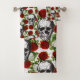 Les roses rouges et blancs vintages ont appareillé avec les crânes noirs