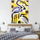 Cranes In Geometric Abstract Art Style On Yellow Canvas Print