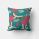 Cranes Peonies: Vintage Floral Graphics Throw Pillow