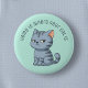 Cranky Grey Tabby Cat Custom Text Green 2 Inch Round Button