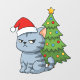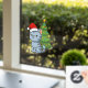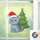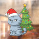 Cranky Grey Tabby Cat Red Hat Christmas Tree Window Cling