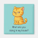 Cute cartoon illustration of a cranky orange tabby cat glaring at the viewer. Customizable text.