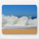 A beautiful ocean view of some waves crashing along the shoreline of a sandy beach.