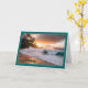 Cette carte d'anniversaire présente une scène de coucher de soleil captivante sur la plage, parfaite pour ceux qui aiment la beauté et la sérénité de l'océan. Le design saisit le moment dynamique des vagues qui s'écrasent sur un rivage sablonneux, encadré par un magnifique décor de coucher de soleil doré. Les teintes chaudes de l'orange, du rose et du jaune se marient harmonieusement avec les bleus et les verts profonds de l'océan, créant une image vivante et vivante mais paisible. Au loin, les palmiers s'élancent doucement, silhouettes contre le ciel coloré, ajoutant une touche tropicale et apaisante à la scène. La bordure de la carte est ornée d'un délicat motif en or, offrant un cadre élégant qui améliore la beauté naturelle de l'image. Le message "Joyeux Anniversaire" est élégamment placé dans le coin inférieur gauche dans un script audacieux et fluide, correspondant au thème tranquille mais animé de la carte. Cette carte plairait aux clients à la recherche d'une façon unique et pittoresque de célébrer un anniversaire spécial, idéal pour ceux qui aiment la nature, les couchers de soleil, ou le son apaisant des vagues de l'océan. Il allie chaleur, beauté et une touche d'aventure, ce qui en fait un choix mémorable pour exprimer des voeux d'anniversaire sincères.