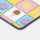 Satisfaites votre dent sucrée avec ce motif coloré qui propose de savoureuses friandises comme un cône de crème glacée au chocolat, un beigne de chocolat mauve, un macaron jaune citron, et une sucrerie tourbée rose et blanche séparée par des chips de chocolat et entourée de saupoudrées d'arc-en-ciel sur quatre carrés aux couleurs vives.