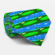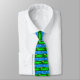 Cravate dépeignant une illustration numérique du 18ème trou sur un terrain de golf avec un ciel bleu nuageux, le lac, les arbres, le dessableur et la boule de golf se reposant sur le vert, pouces à partir de la tasse attendant pour être frappé légèrement dedans.