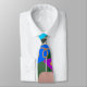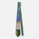 Ce design de cravate ressemble à des ornements en rouge, vert, bleu, rose, or, argent et blanc sur un sapin de Noël.