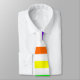 Une cravate multicolore avec alternance arc-en-ciel et bandes horizontales blanches.