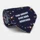 Fêtant un baby shower, un père porte une cravate fantaisiste ornée d'étoiles et de planètes, embrassant son nouveau rôle avec joie.