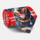 Super mignon chien de Beauceron habillé pour célébrer la saison et jumelé avec un plaid rouge festif pour les amoureux de les chiens.
