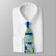 Le cravate de cet homme a un motif art déco de bloc carré en vitrail numérique. Un design géométrique et coloré dans les couleurs du bleu, de l'aquamarine et du vert, une cravate design parfaite pour aller dîner ou au bureau. Vous pouvez rendre le motif sur ce cravate plus grand ou plus petit.