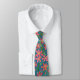 Cravate Clematis rose, rouge, orange floral sur bleu profo