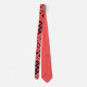 Cette cravate a un design Valentin de coeur répétitif avec différents graphismes à l'intérieur sur un champ de rouge.