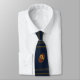 Terminez la recherche pour la fête de mariage avec ces cravates personnalisés. Arrière - plan est un bleu fédéral profond orné avec des rayures horizontales à l'apparence brillante d'or dans des groupes de 3 et 5 médaillons ovales rouges foncés avec le même effet or brillant et surmonté avec 2 bandes mariages dorées entrelacées.