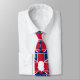 Cravate commémorative du couronnement du roi Charles III avec silhouette de la tête de Charles et arrière - plan rouge, blanc et bleu.