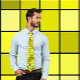 Une cravate frappante aux tons de mosaïques jaunes aux contours noirs.