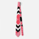 Cette cravate est décorée dans un style art déco avec des formes diamant en noir, blanc et rose sur un champ de pastèque.