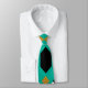 Cette cravate est décorée dans un style art déco, avec des formes diamant en noir, blanc et bronzé sur un champ de turquoise.