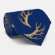 Cravate masculine bleu marine avec bois de cerf design pour le chasseur.
