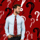 Cette cravate cool présente des points d'interrogation en détresse de tailles et des polices en noir et blanc sur le marron.