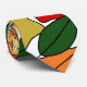 Cette cravate a un design de feuilles qui se répètent pour faire un tas de feuilles dans les tons jaune, rouge, orange et vert.