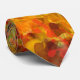 Cette cravate présente un collage numérique fait de nombreuses couches et textures dans les tons jaune, orange, vert, marron et rouge orange.