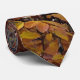 Cette cravate comporte une belle conception impressionniste d'une forêt d'arbre de hêtre dans des couleurs brillantes d'automne de rouge, de brun, de jaune et or. Quelques troncs de brun foncé jettent un coup d'oeil par le feuille.