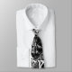 cette cravate blanche utilise les graphiques noirs des voitures, des dames, et d'autres images pour créer un mur graffitied de marche