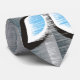 Gris rayures trois pétales bleus moderne cravate de peinture humide. Des rayures verticales en gris, blanc et un peu bleu et une fleur à trois pétales en noir, blanc et bleu aqua ornent cette cravate tendance.