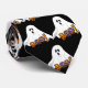 Habille-toi dans cette cravate d'Halloween pour le travail ou pour des fêtes saisonnières. Cette cravate de jour férié présente une illustration d'un fantôme et un texte décoratif Boo sur le noir.
