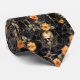 Une Cravate D'Halloween Pour Hommes Conçue En Noir Avec Des Crânes Et Des Fleurs Oranges