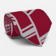 Cette cravate a un design art déco de lignes verticales argentées avec des lignes diagonales argentées les reliant sur un champ de marron.