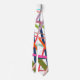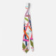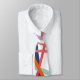 Cette cravate a un design géométrique de lignes éparpillées dans les couleurs florales - les tons rose, orange, jaune, bleu et vert.