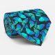 Cravate élégante bleu foncé imprimée partout avec des papillons tropicaux bleus illustrés