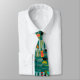 Cravate moderne du milieu du siècle pour les hommes, aux couleurs turquoises, citron vert et or et rouge avec motif de conception de l'ère spatiale.