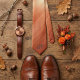 The bottom of the tie features a clean, elegant personalized monogram, making it an exceptional gift for the modern professional or a stylish addition to a wedding party. Whether you're dressing for a fall wedding, a corporate event, or a special anniversary, this tie brings a warm, metallic glow to any suit.