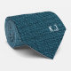 Cravate Monogramme de texture de lin bleu