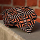 Motif géométrique sans couture aux formes géométriques dans les tons noir et orange. Texture avec effet d'illusion optique.