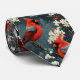 Un motif frappant de cardinaux rouges assis sur des branches dressées contre un arrière - plan vert foncé.